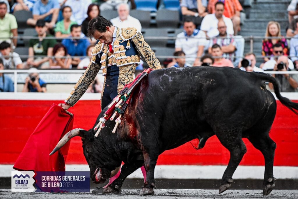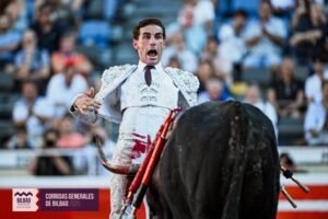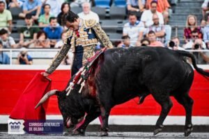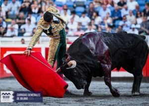 " href="https://toreoyarte.com/glossaire/trasteo/" target="_blank" data-mobile-support="0" data-gt-translate-attributes='[{"attribute":"data-cmtooltip", "format":"html"}]' tabindex="0" role="link">trasteo à sensation plus que de toreo fondamental. Il aura eu raison puisque le public de Bilbao a apprécié et a demandé les trophées, moins intense la pétition pour la seconde oreille. Au terme de cette feria, les critiques envers l’" href="https://toreoyarte.com/glossaire/empresa/" target="_blank" data-mobile-support="0" data-gt-translate-attributes='[{"attribute":"data-cmtooltip", "format":"html"}]' tabindex="0" role="link">Empresa vont bon train parmi les aficionados. Difficile de juger ce qui nous attend l’an prochain. Il faudra être patient et se préparer à toute éventualité.