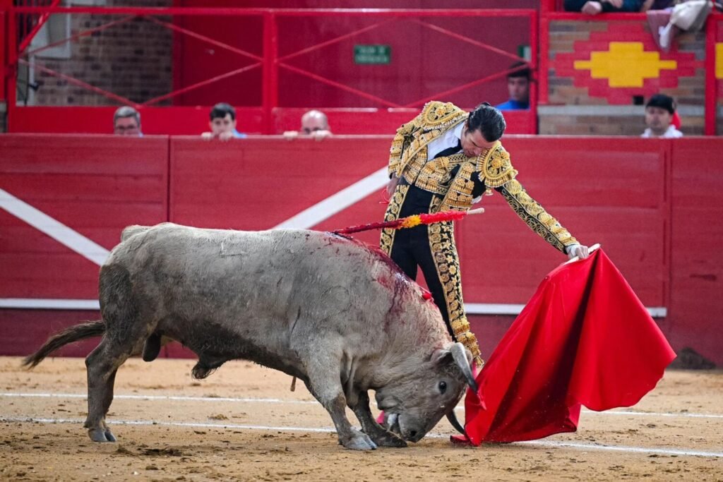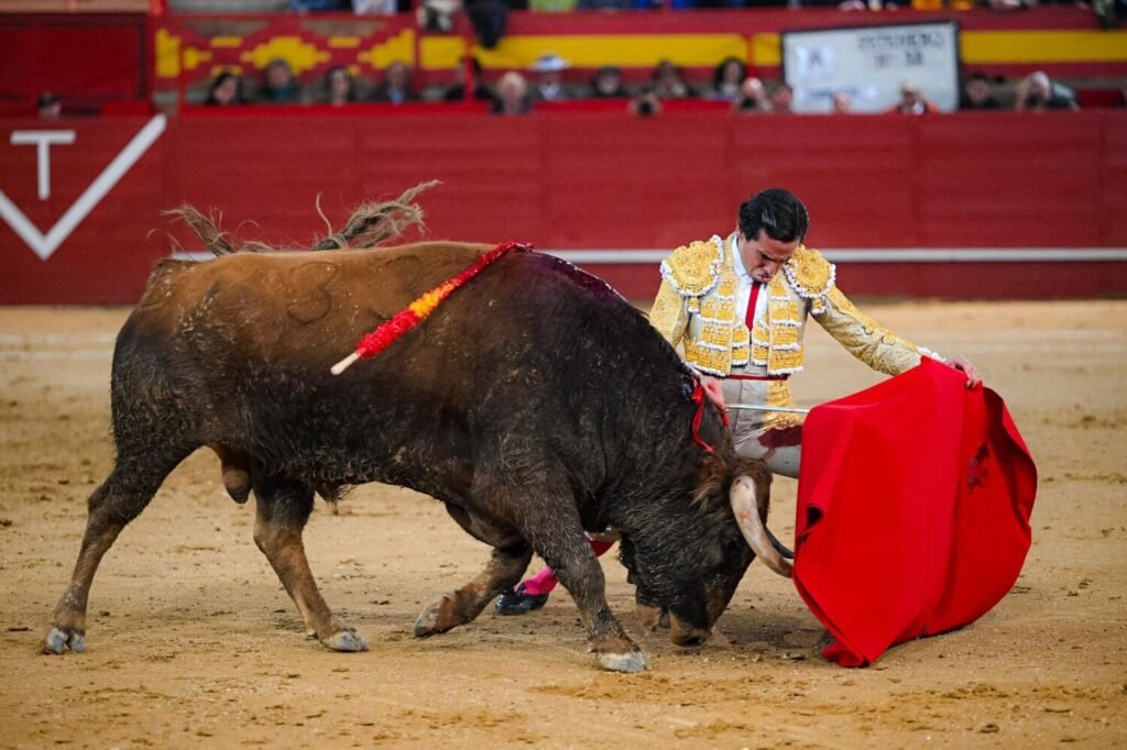 A guichets fermés se déroulait cette dernière corrida de Feria car l’affiche promettait et avait attiré de nombreux aficionados de Madrid et des provinces alentour. José Igacio Uceda Leal, le Madrilène, se présentait comme chef de cartel devant deux Sévillans, réputés artistes, Juan Ortega et Pablo Aguado. Les toros? venaient d’Andalousie  et leur sang devait être très dilué par toutes les pluies qui actuellement inondent tout le sud de l’Espagne. En effet, la pauvreté des produits de Torrealta, leurs hechuras et comportement, sans caste ni force, doit être soulignée. La faute en incombe à l’empresa et aux veedores pour avoir sélectionné des toros impropres à la place de Valdemorillo, de 3ème catégorie, certes, mais à quelques lieues de Madrid dont la majorité des aficionados venaient de la capitale por cette belle affiche. La variété des robes des torrealta cachait leur indigence. En réalité, tous venaient tout juste de passer les quatre ans… à un ou deux mois près.  La suerte de varas, inexistante, n’était même pas protestée sauf lorsque le picador s’appuyait un peu trop sur la pique…