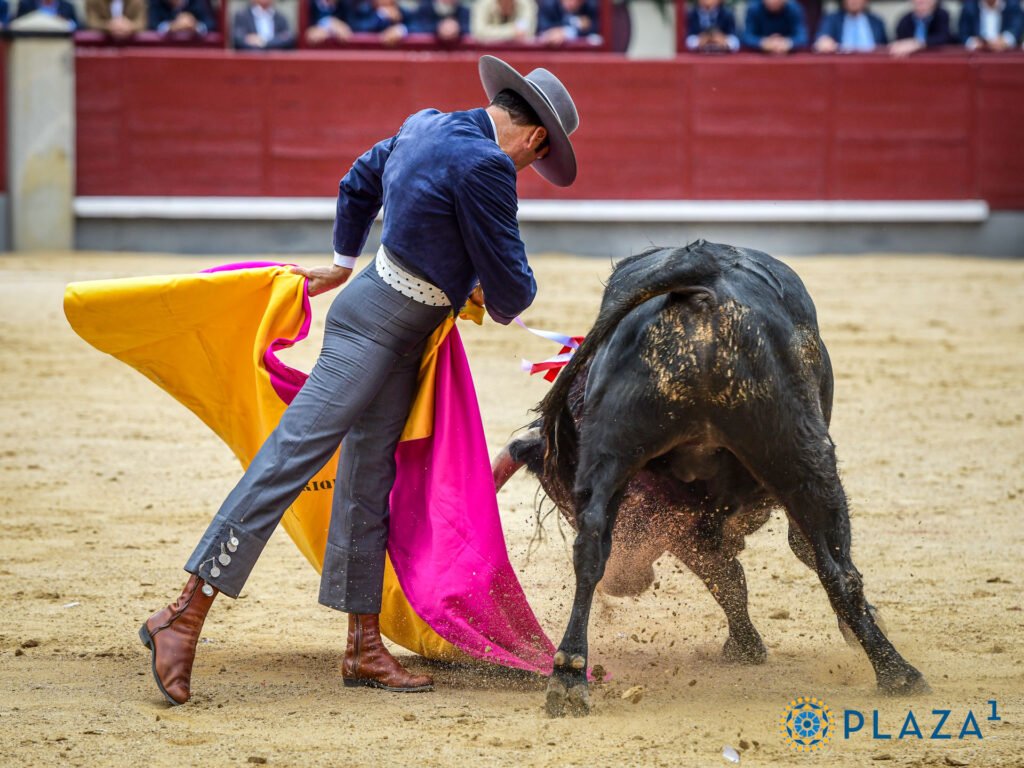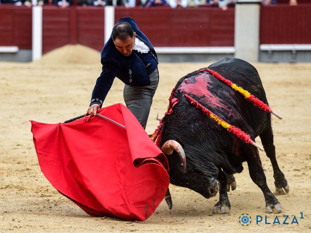César Rincón, Colombien mais tant de Madrid, recevait une ovation avant même de prendre le capote et devait répondre à ce chaleureux acceuil depuis le tercio. Il n’allait pas décevoir ces fans inconditionnels ni ceux qui peut-être n’avaient connu ses quatre sorties a hombros de Las Ventas en 1991. Il devait toréer un sobrero de Garcigrande car le 4ème sortait avec des problèmes de locomotion et peut-ètre de vision - choc contre un burladero? Le bicho accrochait une première fois, sans dommage, César avant même d’avoir esquissé un mouvement et ensuite un subalterne. César dessinait des véroniques de grand tenple, ferme sur ses appuis, taille cambrée et plaçant, lui-même, le novillo pour une seule pique. Le tanteo de muleta, passes par le haut et le bas, une trincherilla, passe de poitrine mettait en bouche pour ce qui suivait. Comme il y a plus de 30 ans, César “citait” le novillo d’une bonne vingtaine de mètres pour une série de derechazos et une autre, liant les passes avec assurance et surtout position démontrant une sérieuse préparation physique et mentale pour défendre un tel défi. Sur la gauche, plus rapproché le cite, les naturelles enchaînées et surtout les remates par molinete invertido ou trincherilla faisaient merveille sans compter les passes de poitrines “templées” et complètes. Le temple des derniers derechazos et les ayudados por alto et por bajo faisaient rugir le public de Madrid. Le novillo de Garcigrande, ovacionné, avait permis tout ce déploiement d’art et de métier. Un pinchazo et une estocade caidilla provoquaient le délire et les deux oreilles, sans discussion, unánimes, étaient accordées.