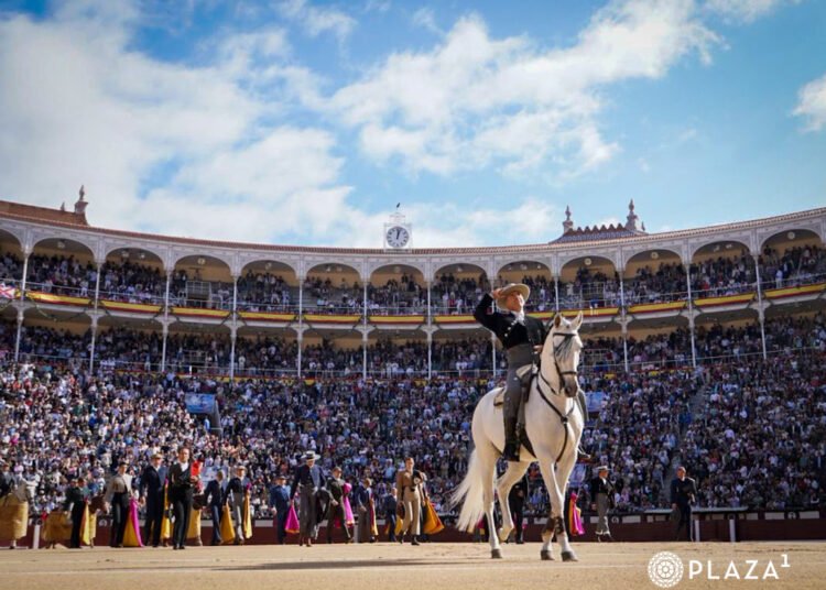 On le sait, en tout cas nous, aficionados, nous savons que la fiesta de los Toros peut nous apporter des joies, des déceptions, et aussi des émotions inconmensurables qui nous coupent la voix, nous font monter les larmes aux yeux. Le festival matinal en fut la cause de ces deux dernières réactions! À l’initiative de Morante de la Puebla et financer un monumenrt à la mémoire de Antonio Chenel “Antoñete”, torero modèle et icône de Madrid, le festival réunissait des (pas trop) vieilles gloires de la Tauromachie moderne, Pablo Hermoso de Mendoza – rejoneador – et les matadors Curro Vázquez, Carlos Escolar “Frascuelo”, César Rincón, Enrique Ponce et – peut-être une future vedette en la personne de la novillera Olga Casado. Morante, lui, est toujours en activité et s’était réservé un novillo de Osborne en souvenir du “toro blanco” de Osborne que Antoñete toréa le 15 mai 1966 à Madrid. Quel détail! Le reste des novillos destinés aux matadors étaient de Garcigrande, bien présentés dans les limites que sont celles d’un festival. Las Ventas était en fête alors que sur la Castellana, voie principale de Madrid, se déroulait la célébration de la fête nationale espagnole, Fête de la Hispanidad, en ce 12 octobre en présence du Roi d’Espagne Felipe VI, de la famille royale et membres du gouvernement. Une immense ovation accueillait les toreros dès leur apparition à la porte des cuadrillas, répetée au terme du paseíllo, tous les sept saluant le public debout.