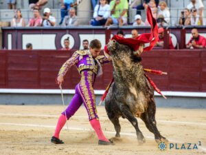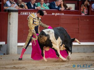 Le cinquième de Monteviejo, quelque peu terciado pour Madrid, charge avec nonchalance la cape du torero mexicain qui le mène au centre. Le toro s’emploie contre le peto deux fois sous des piques médiocres. Le trasteo de Sánchez démarre genoux en terre, ou jambe fléchie, en mode de tanteo. Il doit prendre la mesure d’une charge courte et irrégulière. Il le fait à base de toques por fuera et de zapatillazos. Le bicho est gazapón, surtout à gauche, corne rapidement abandonnée. La faena se termine en mouvement et toreo sur la face. Pinchazo et trois-quarts de lame tendida, desprendida et atravesada. Deux descabellos. Silence.