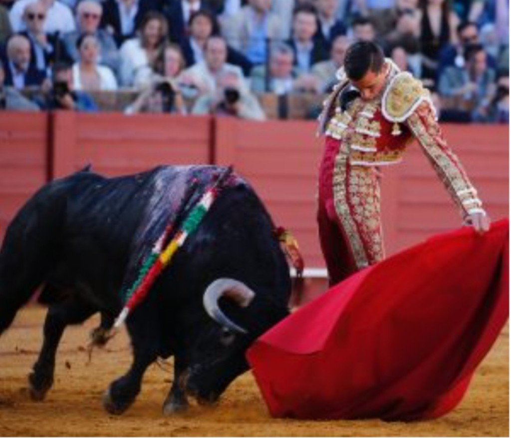SÉVILLE 10 Avril 2024 - Porte du Prince de Miguel Ángel Perera et une oreille pour Borja Jiménez.  Vuelta pour le quatrième de El Parralejo.