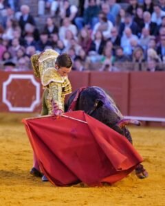 Rafa Serna fait le chemin jusqu'aux chiqueros pour recevoir son second. Il plonge à terre face à la charge limpia du FY. Le toro attaque avec alegría et Serna dessine des véroniques et demi, templées, de bonne facture. Sous une bonne vara le toro plie les pattes puis pousse brièvement. Il s’emploie parcimonieusement à la seconde. Quite de Molina par tafallera et espaldina terminée en cordobina torée. Brindis de Serna au public. À genoux il reçoit les embestidas puis se relève alors que le toro s’agenouille. Les premières droitières sont mécaniques alors que les naturelles sont à la fois efficaces et imparfaites esthétiquement. Les trajectoires allongées provoquent des olés. Les charges restent vives et Serna lie une série à droite engagée, avec rythme. Olés et musique. La suite baisse un peu en intensité sur la même corne et prend un air de bagarre. Suivent des doblones appuyés donnés avec la main gauche. Entière trasera en entrant droit et en perdant la muleta. Oreille sur pétition pour un trasteo volontaire face à un animal vibrant. Palmas au toro de FY.