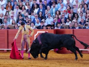 Le premier de Pablo Aguado offre des charges distraites dont profite le matador pour dessiner des lances avec temple. Le bicho est d’abord épargné au fer, sur ordre. Le deuxième passage est conventionnel. Talavante réalise un quite facile par véroniques le toro passant sans véritable intention. Aguado réplique en compensant le manque d’entrega du toro par des chicuelinas parfaitement coordonnées à la charge. Iván García brille et salue au second tiers. Le début de faena par le bas alternant droite et trincherazos est interrompu par une vuelta de campana. La série droitière qui suit conduit le manso à rompre et fuir. Aguado vole quelques naturelles sur le passage en querencia du toro. L’effort est récompensé à droite avec deux série complètes en retenant le fuyard. Pinchazo et entière en place. Pitos au toro et silence.