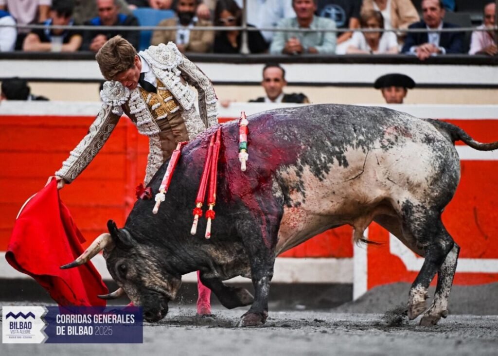 Bilbao 20 août2025 – 3ème de feria – Premier indulto de l’histoire des arènes de Vista Alegre. “Tapaboca-26” de La Quinta gracié après une bonne faena de Borja Jiménez, triomphateur de la corrida mixte.