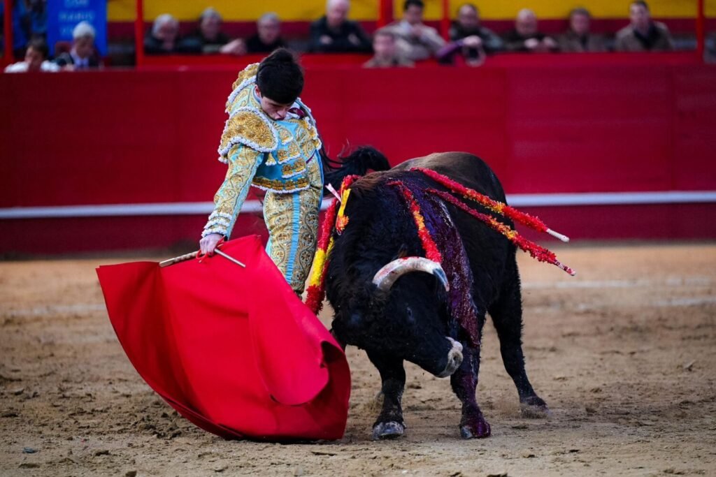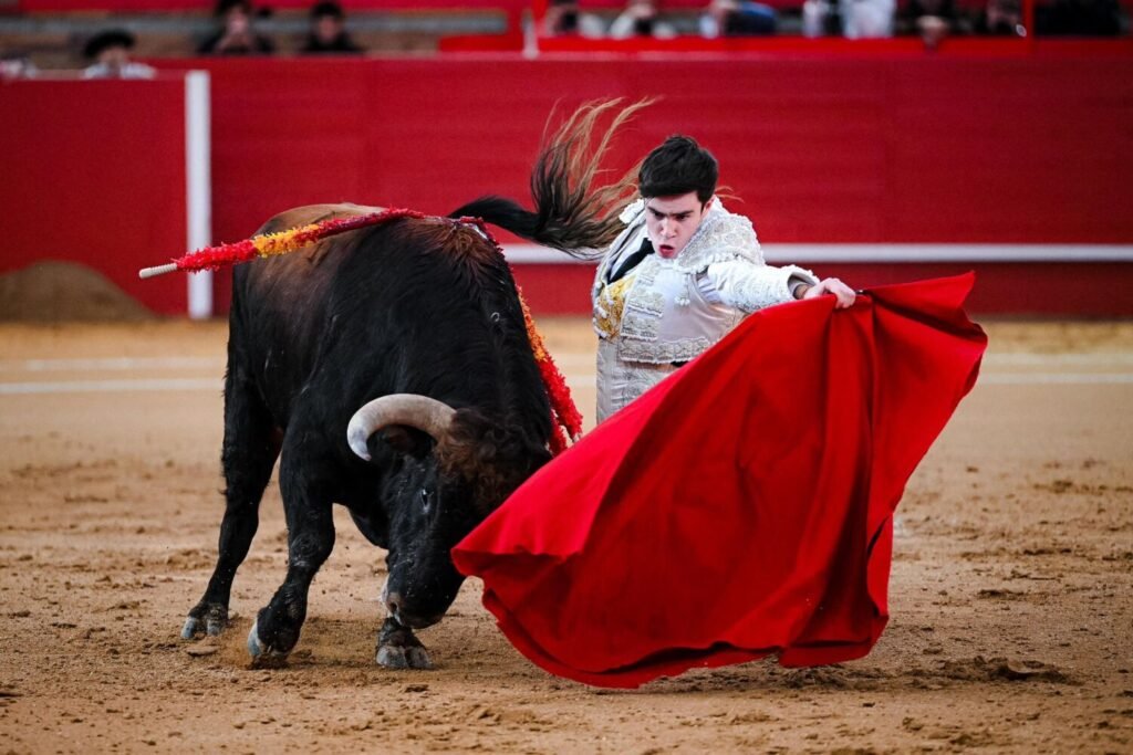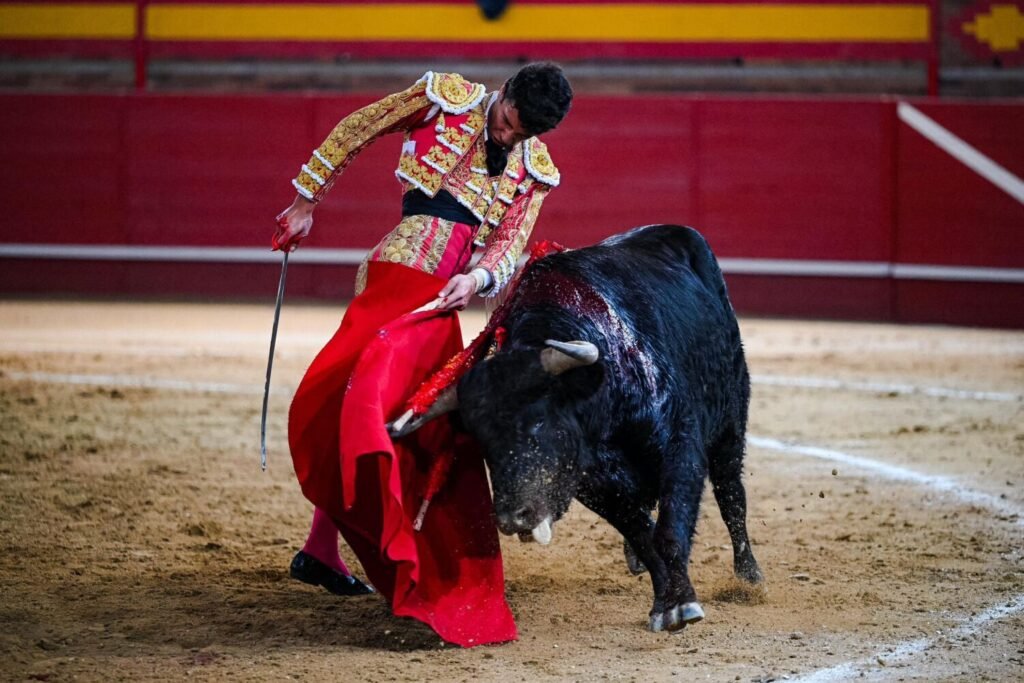 Mario Vilau allait à porta gayola à la sortie d’un novillo plus costaud pour ensuite lui appliquer des capotazos sans réponse de l’animal. Venaient des gaoneras bougées sans aucun sens avant une pique ratée, dans l’omoplate du bicho. Il y eut de tout dans la faena de muleta, des passes où le novillo passait, oui, mais il ne se passait rien… Il fallut arriver à une série à genoux pour observer que le novillo méritait un autre traitement que celui qui lui avait été prodigué auparavent: des circulaires inversées, du temple, grâce au novillo? maintenant “humilié” et surtout conduit avec mando obligatoire dans cette position! Une oreille sanctionnait une faena bien terminée par une estocade desprendida, delantera.